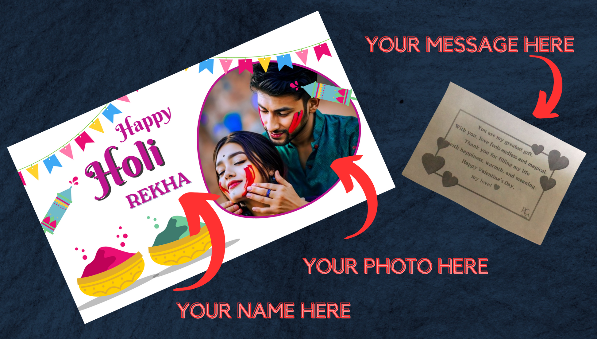 HOL#002 PERSONALIZED GIFT OF CHOCOLATES ON COLORFUL HOLI