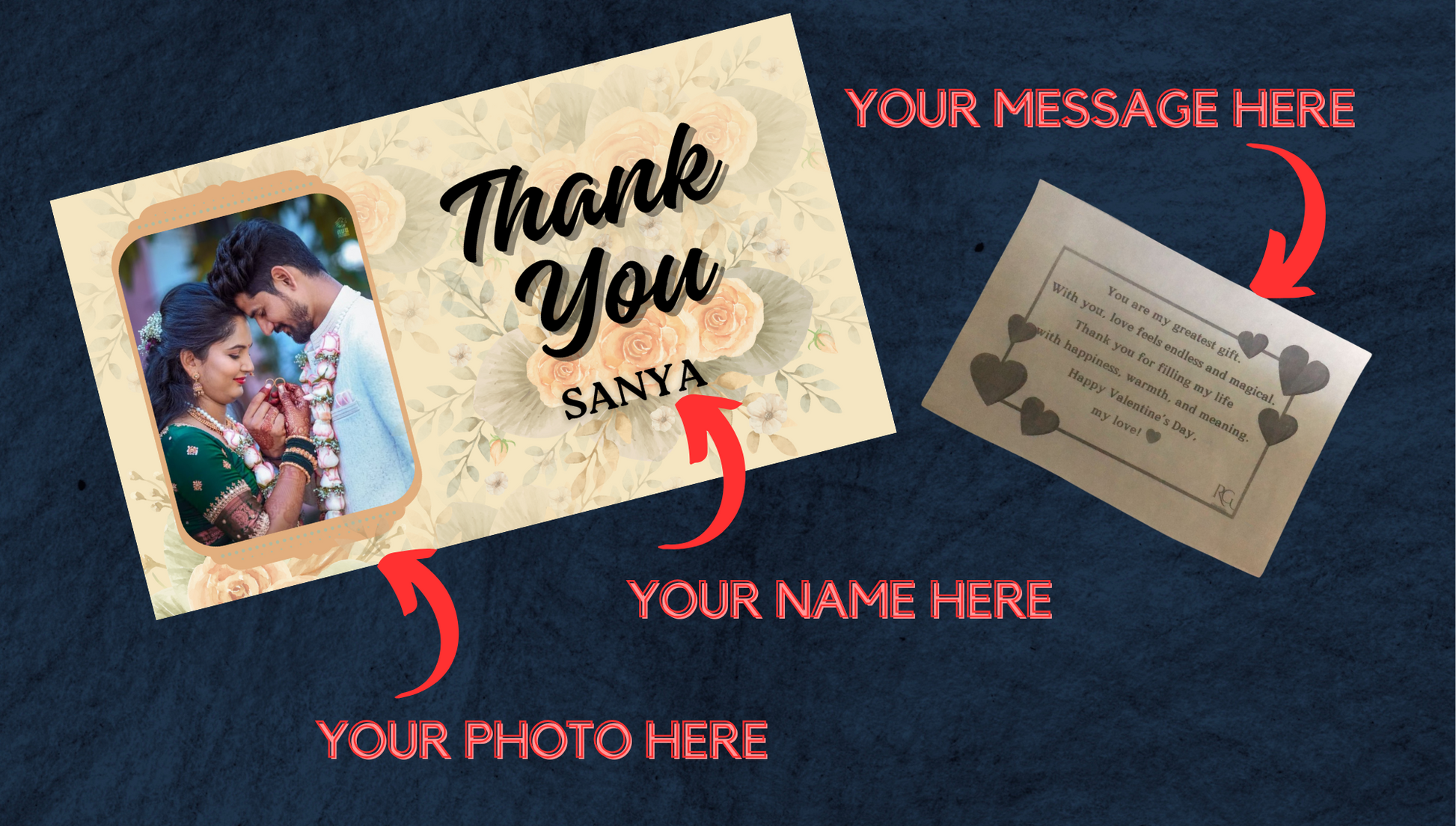 - Kindly share the recipient's name for personalization on the box. Upload the photo you wish to have printed on both the box and chocolates.