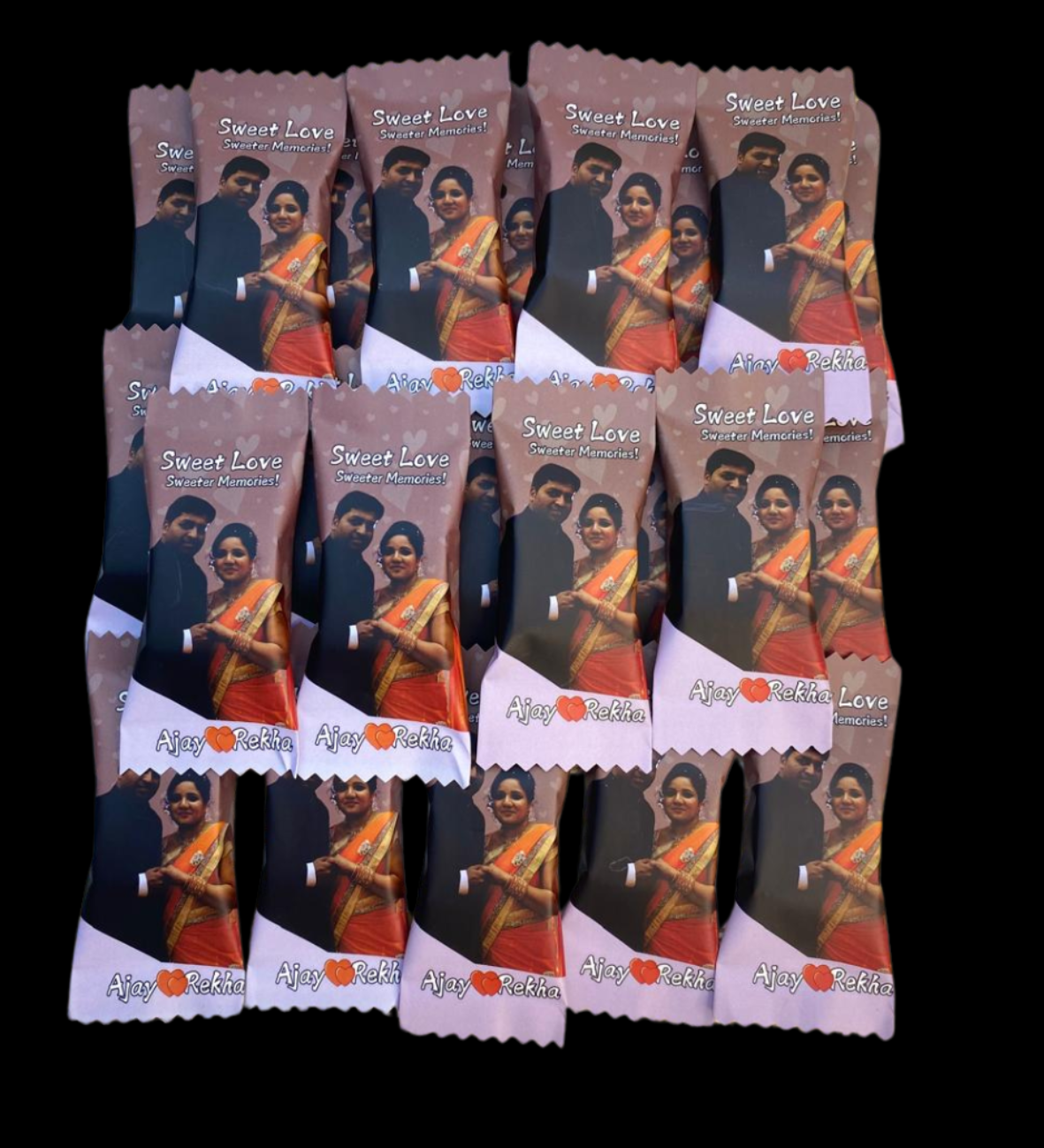 - Edible Printing: We use high-quality edible ink for printing, making it completely safe for consumption. The chocolates feature a dual-layer design— a smooth white chocolate top and a rich dark chocolate base.