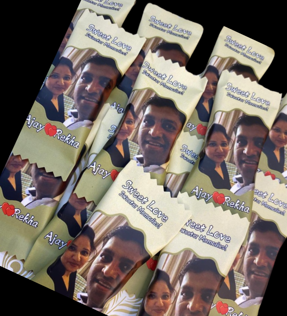 - Edible Printing: We use high-quality edible ink for printing, making it completely safe for consumption. The chocolates feature a dual-layer design— a smooth white chocolate top and a rich dark chocolate base.