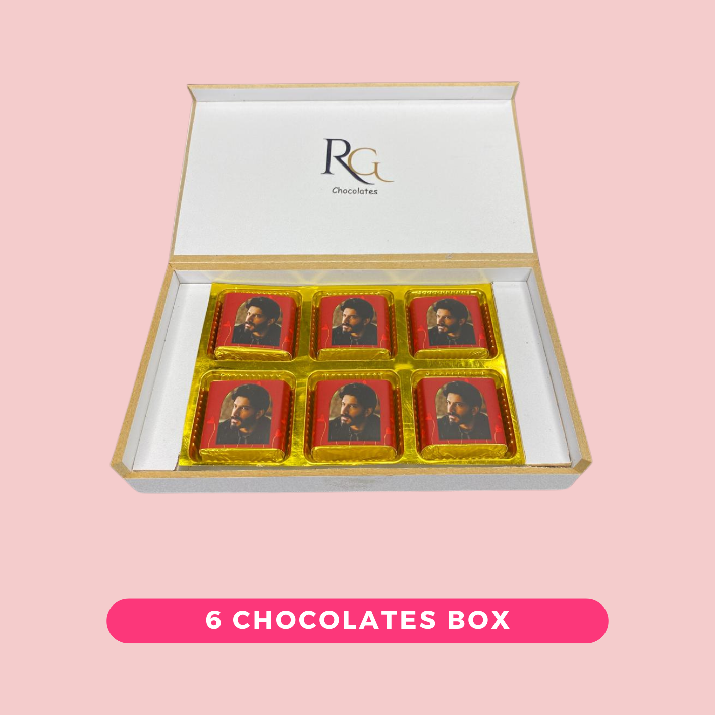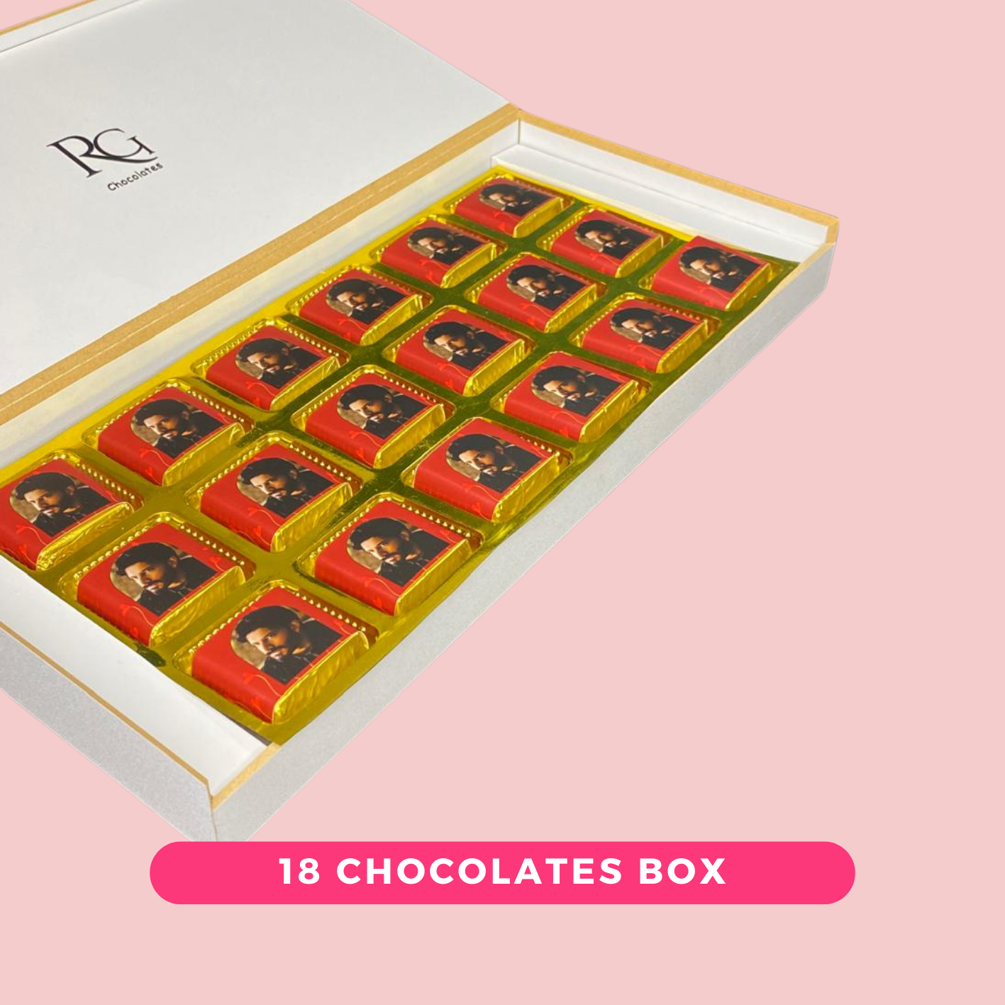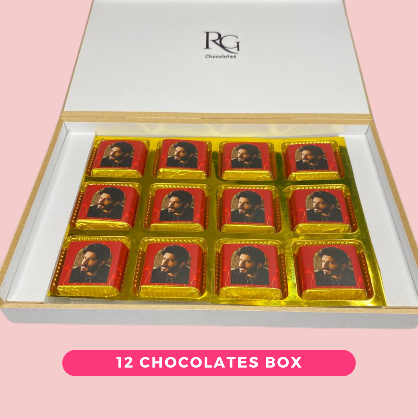 - Kindly share the recipient's name for personalization on the box. Upload the photo you wish to have printed on both the box and chocolates.
